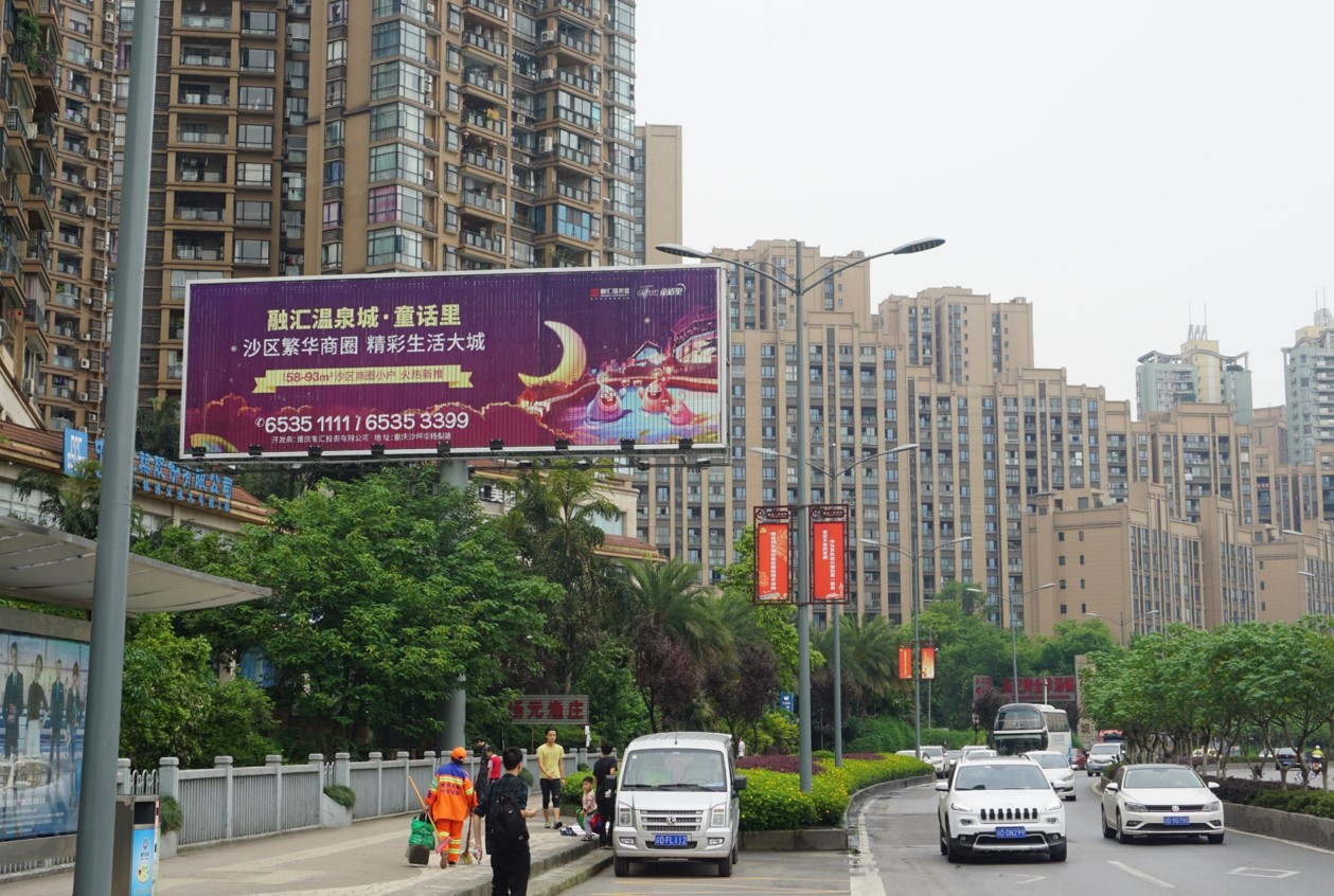 該廣告位位于沙坪壩區沙濱路,沙濱路是沙坪壩、渝中區、江北區三地往來的主要交通要道,該路段環境單純、地勢平坦、視野開闊;車流量大、廣告視覺沖擊力強、受眾目標廣泛、廣告信息發布效果突出,是各企業、事業單位提高知名度和推廣產品的首選之地。