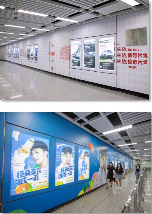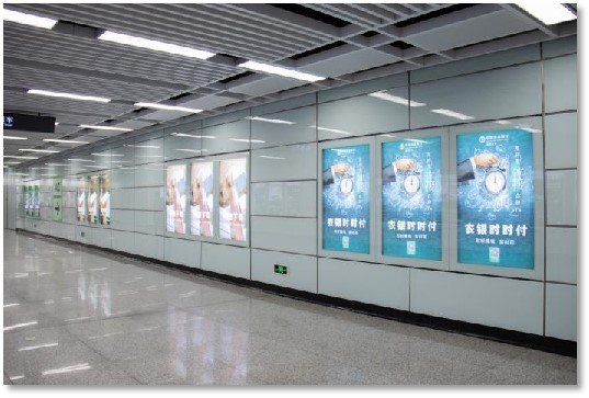公共區3連4封燈箱位于個站點出入口過道處,為進出站點必經之路。