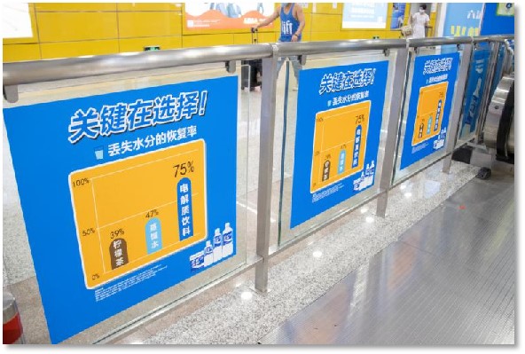 創意玻璃貼為粘貼在站臺與站廳上的玻璃圍欄上的海報,可粘貼的范圍廣泛,并且廣告位置以單幅畫面計算,粘貼位置與組合靈活多變;