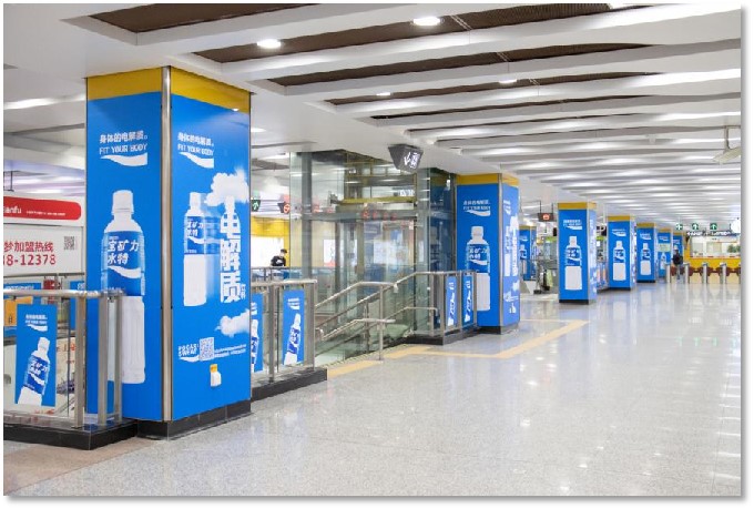 大部分地鐵包柱可采用全包圍方式進行上畫,適合360度全方位展現廣告畫面,其中鴻福路更是圓柱形式上畫,可進行單幅畫面360度無死角方式進行設計上畫。