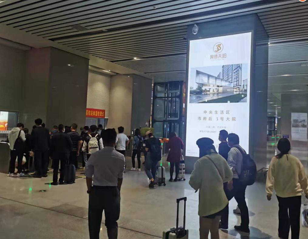 優勢:覆蓋兩個站臺的所有到達旅客,位于扶梯上?,視線正對,百分之百的到達率。