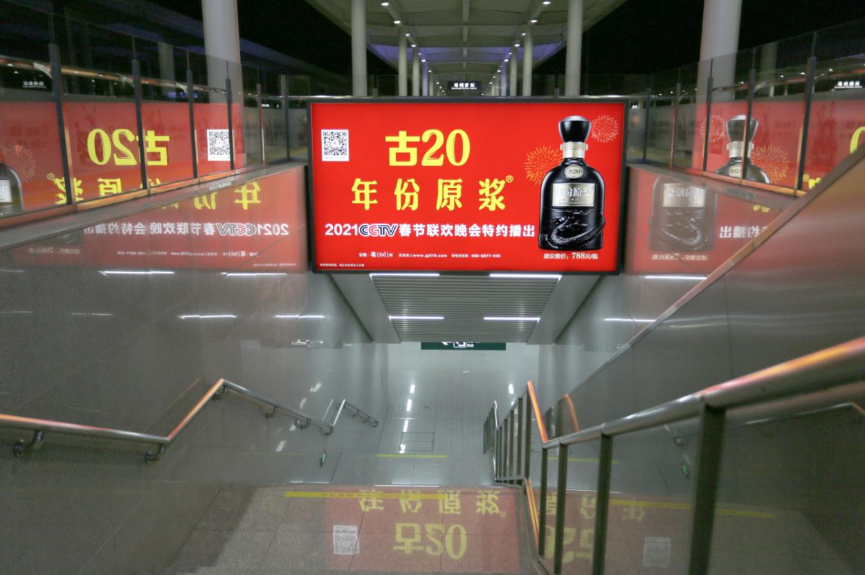 該媒體位于出站口正前方,媒體360度輻射視角,100%覆蓋出站乘客,呈現矩陣布局、多次曝光的傳播效果。