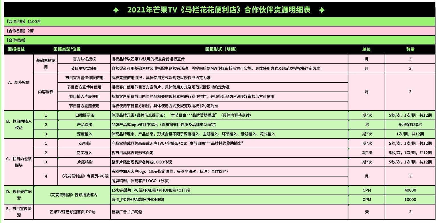2021年芒果TV《馬欄花花便利店》合作伙伴資源明細表