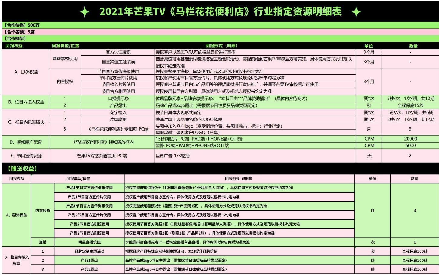 2021年芒果TV《馬欄花花便利店》行業指定資源明細表