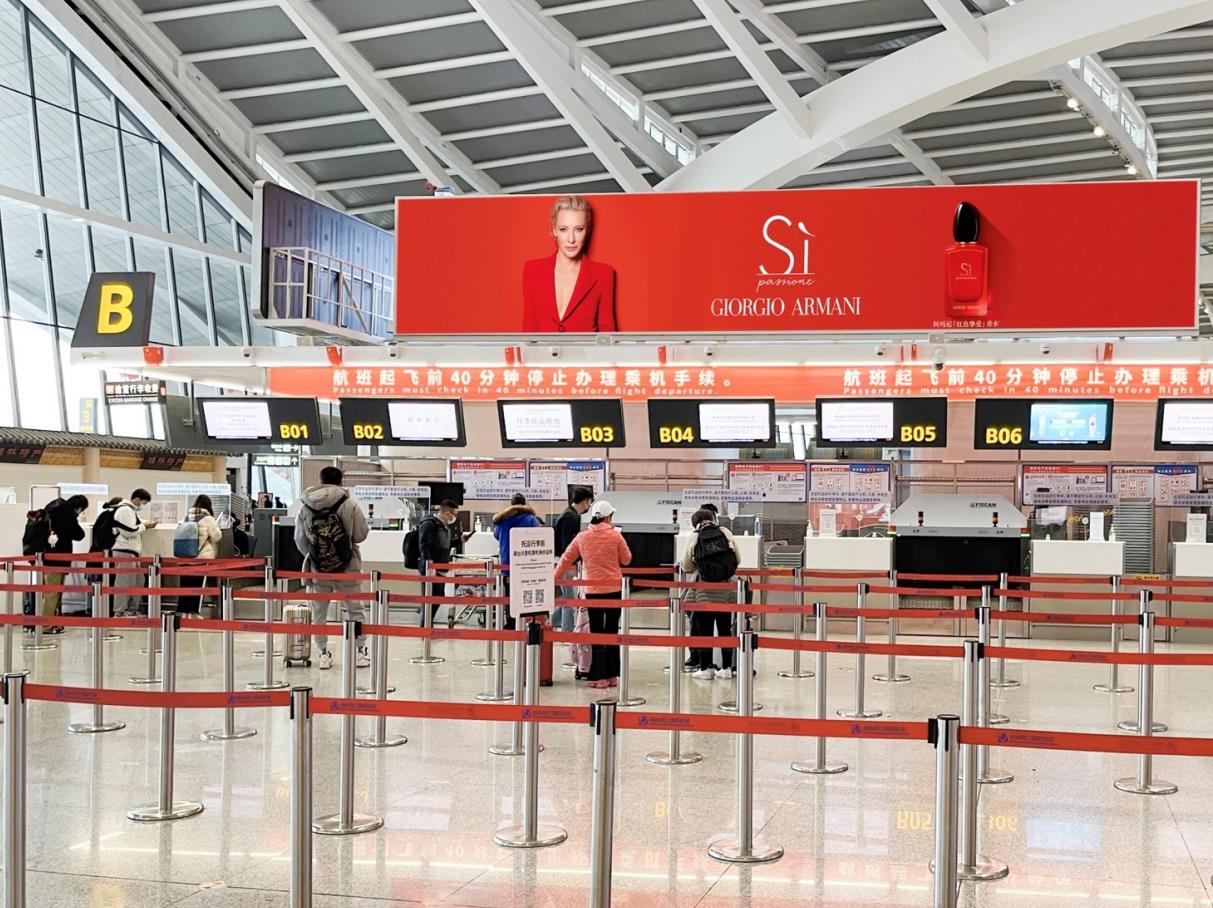 T2航站樓3層國(guó)內(nèi)出發(fā)通廊廣告