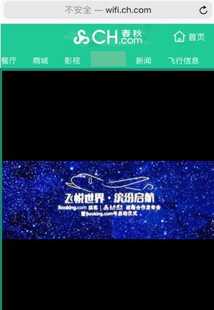 春秋航空空中Wi-Fi連接子版塊包含動態(tài)、靜態(tài)的展示廣告,視頻廣告及不同主題的內(nèi)容合作。