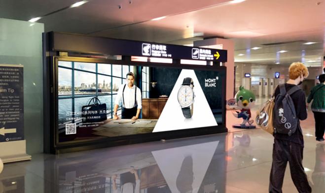 蓬萊機(jī)場國內(nèi)到達(dá)行李提取大廳下電梯正迎面led廣告