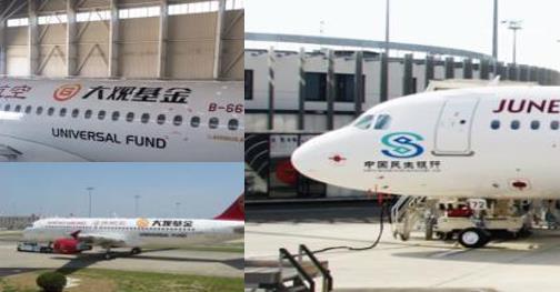 飛機(jī)噴涂廣告:把企業(yè)的LOGO、形象圖案以及廣告語噴涂在寧靜航空班機(jī)的飛機(jī)頭部或機(jī)身。