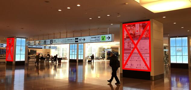 羽田機場3號航站樓2樓到達大廳支柱,作為新的多顯示屏標牌