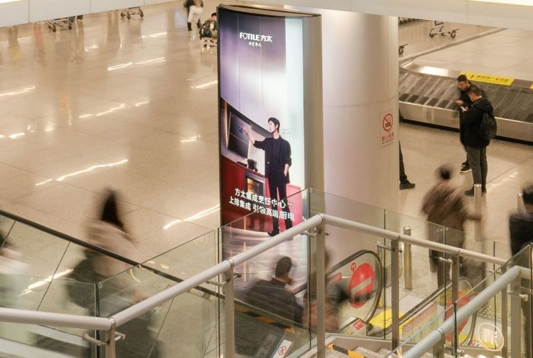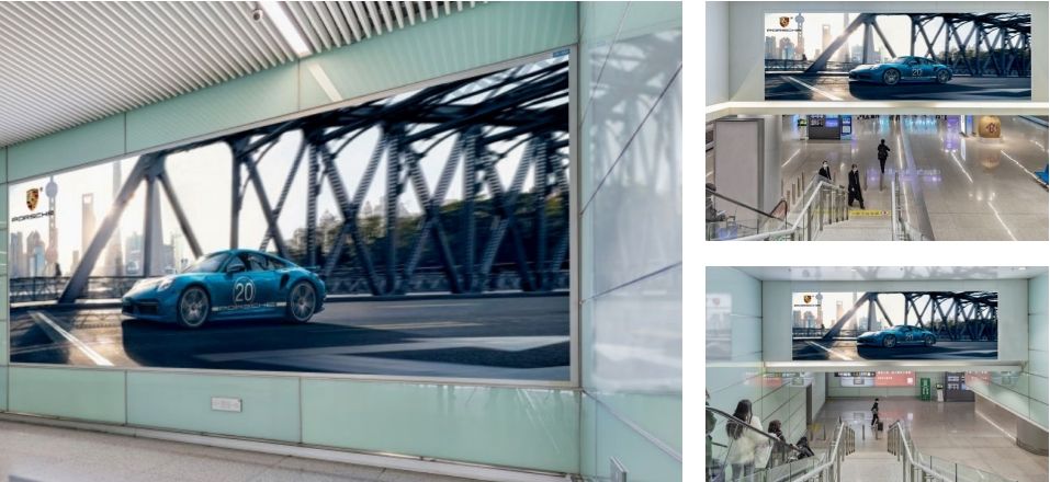 媒體面對(duì)磁浮地鐵通道出口處,全方位覆蓋磁浮到達(dá)及離開(kāi)機(jī)場(chǎng)旅客。 不遠(yuǎn)處為旅客休息區(qū),具有受眾距離近,具有醒目、全面、沖擊力強(qiáng)的展示特點(diǎn), 受眾人群廣,宣傳效果佳。