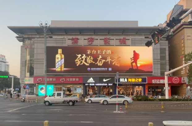大屏位于濟(jì)寧太白中路龍貴購物中心樓體,濟(jì)寧龍貴購物中心是目前為止?jié)鷮幬ㄒ灰患覔碛休p奢品牌的商場。