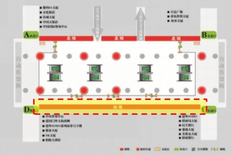 4、站廳西南側D出口:北京銀泰中心、中環世貿中心、安邦金融中心、北京國際財源中心、IFC大廈、建外SOHO西區、SK大廈、柏悅酒店