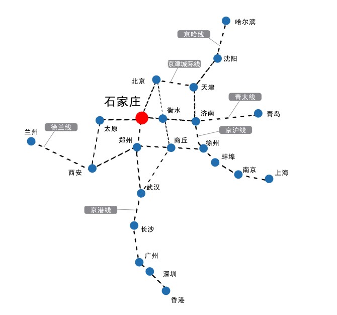 石家莊-北京、石家莊-天津、石家莊-上海、石家莊-唐山、石家莊-太原、石家莊-濟南、 石家莊-廣州、石家莊-深圳、石家莊-大連、石家莊-沈陽