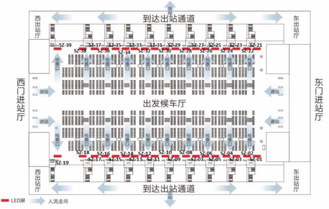 分      布:  高鐵站內候車廳、檢票口、安檢口、進出口、售票廳、扶梯口及站臺等重要關口
