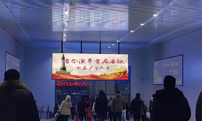 哈爾濱站刷屏廣告,哈爾濱站候車廳LED刷屏機廣告,萬事成傳媒