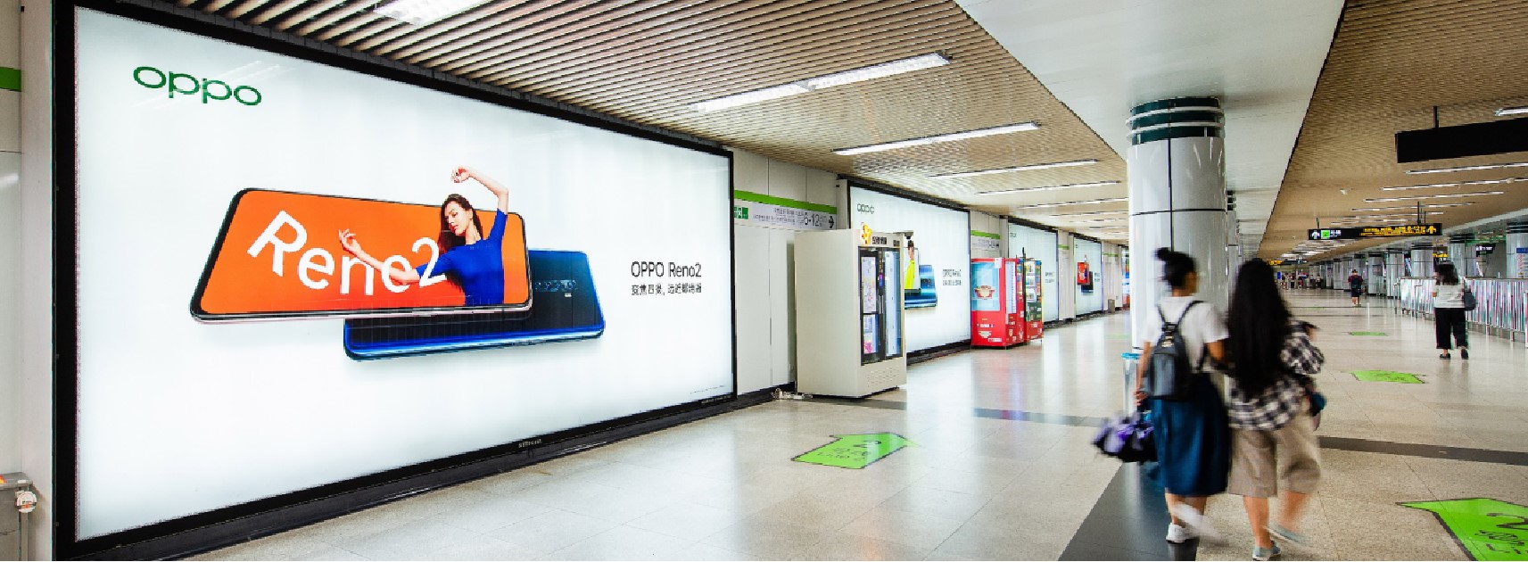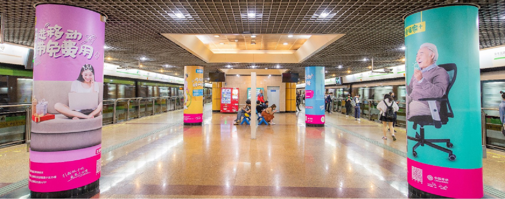 由 電子屏 與 超級動感燈箱,相互交錯組成的電子媒體通道,大面積的靜態海報與高精度的動態畫面不斷沖擊乘客視覺;頂部天花板與通道內柱體的鏡面環境設計從空間上帶來沉浸式的3D體驗;每個區域的定向音響環繞聲系統 從聽覺上刺激乘客的感官體驗 ,日均客流達55萬*人次 支持動畫、TVC、電子海報等,可制作各種大型創意效果