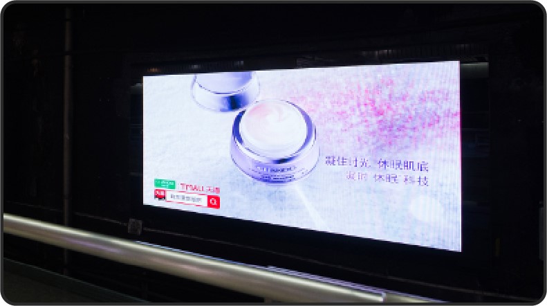位于S級核心換乘通道梯旁,全天候高客流量零距離接觸 每側10或12塊42/32寸高精度電子顯示屏聯裝,支持多種媒體格式播放 創新的媒體形式,獨特的創意模式,體驗高效生動的信息傳達新感覺 ,更可配合大畫幅墻貼,帶來強大視覺沖擊力和品牌親切度