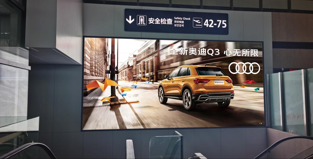 膠東機(jī)場(chǎng)三層國(guó)內(nèi)出發(fā)安檢后高空廣告