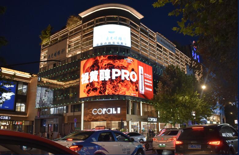 大屏位居建筑物頂層,位于美麗的西子湖畔和繁華的城市中央,是市中心最繁華的慶春路與東坡路交界處,其緊鄰著延安路商業街,附近有湖濱銀泰、蘋果杭州旗艦店,以及匯聚時尚、智慧、人文與一體的新消費街區湖濱步行街、衣之家城市百貨商場。該屏幕對面是一家四星涉外酒店杭州海華大酒店,與武林路女裝特色一條街,離美麗的西子湖畔僅500米距離。