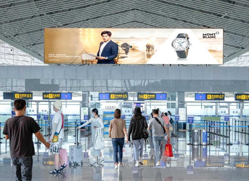 張家界荷花機場出發大廳安檢上方led大屏廣告