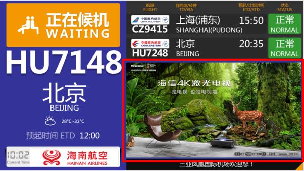 三亞鳳凰機場出發區機場電視廣告,萬事成傳媒
