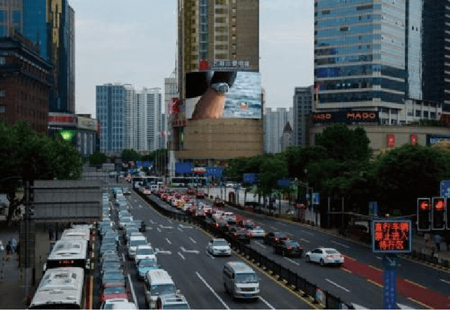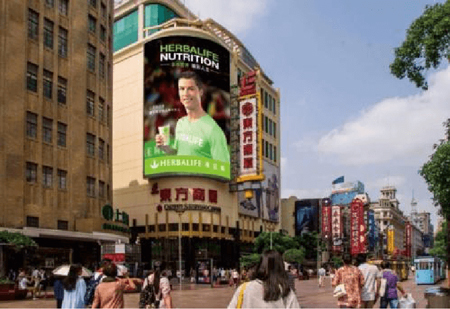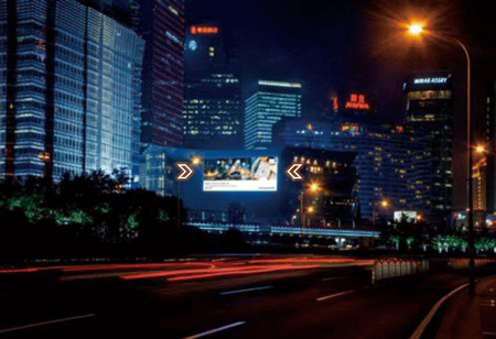干道:地處繁華的淮海路,是上海中心商業(yè)區(qū)的重要交通路段,且是延安路高架可見最大的LED屏