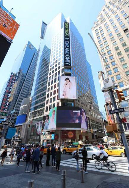 高穎浠粉絲送紐約時(shí)代廣場納斯達(dá)克led廣告以及公車車身廣告
