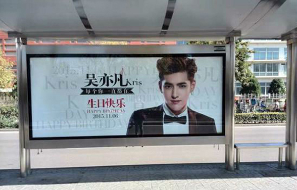 吳亦凡生日,粉絲群集力在北京的廣順南大街、雙井橋西、清華附中、清中關(guān)村北大街以及上海地區(qū)同濟(jì)大學(xué)、上海大學(xué)、松江大學(xué)城、浦東大道等站點(diǎn)的燈箱廣告牌和地鐵看臺廣告牌投放生日廣告。