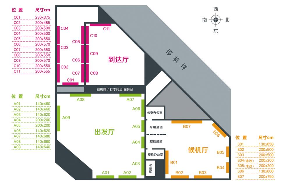 邯鄲機場廣告位示意圖
