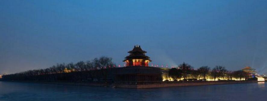 沿著城墻步行至東南角樓,近千米長布滿紅燈籠的故宮東城墻便出現在眼前,東城墻左邊是靜謐的紫禁城內城,右邊則是北池子大街和遠處的王府井等現代建筑。而盡頭處的角樓被各種紅襯得尤為喜慶,自成一幅美妙的畫卷。