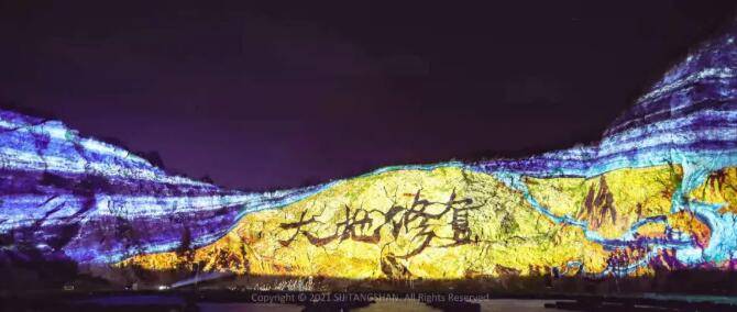 南京湯山礦坑崖壁光雕實景燈光秀!11000㎡的大型山體投影,直觀全面地還原大地之美!