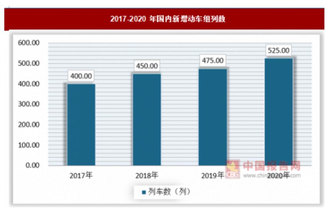 2017-2020年國內新增動車組列數