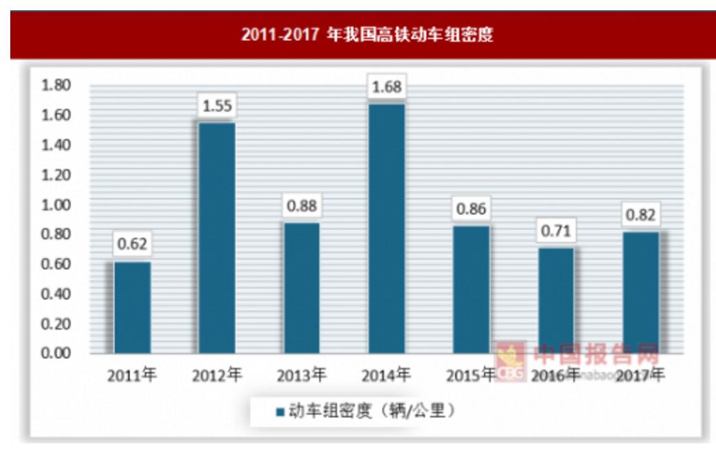 2011-2017年我國高鐵動車組密度