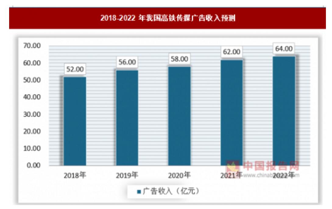 2018-2022年我國高鐵傳媒廣告收入預測